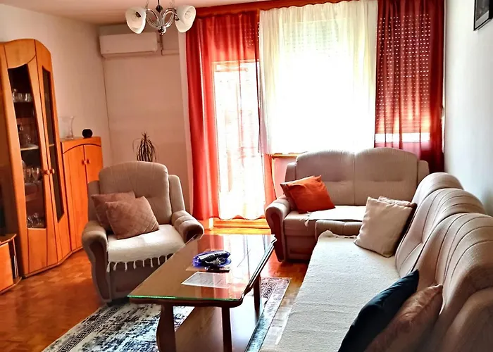 Apartman Emina Apartment includes a balcony and a seating area, featuring parquet flooring and furniture such as a sofa. Guests may also benefit from ironing facilities and climate control, as well as media options like a TV set. Beds fitted with feather down pillows are at guests' disposal. Enjoy the comfort of a bathroom in this apartment, which is equipped with hair dryers, bath sheets, and slippers. Furthermore, a bathtub and a separate toilet is available.